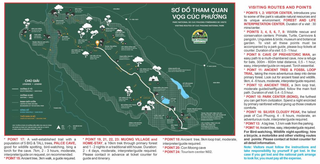 SƠ ĐỒ HƯỚNG DẪN THAM QUAN VƯỜN QUỐC GIA CÚC PHƯƠNG